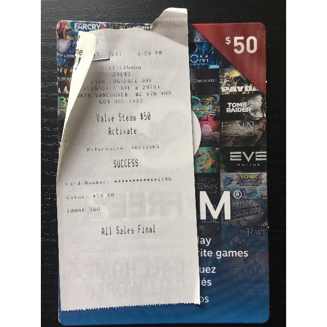$50 steam gift card receipt 2020.